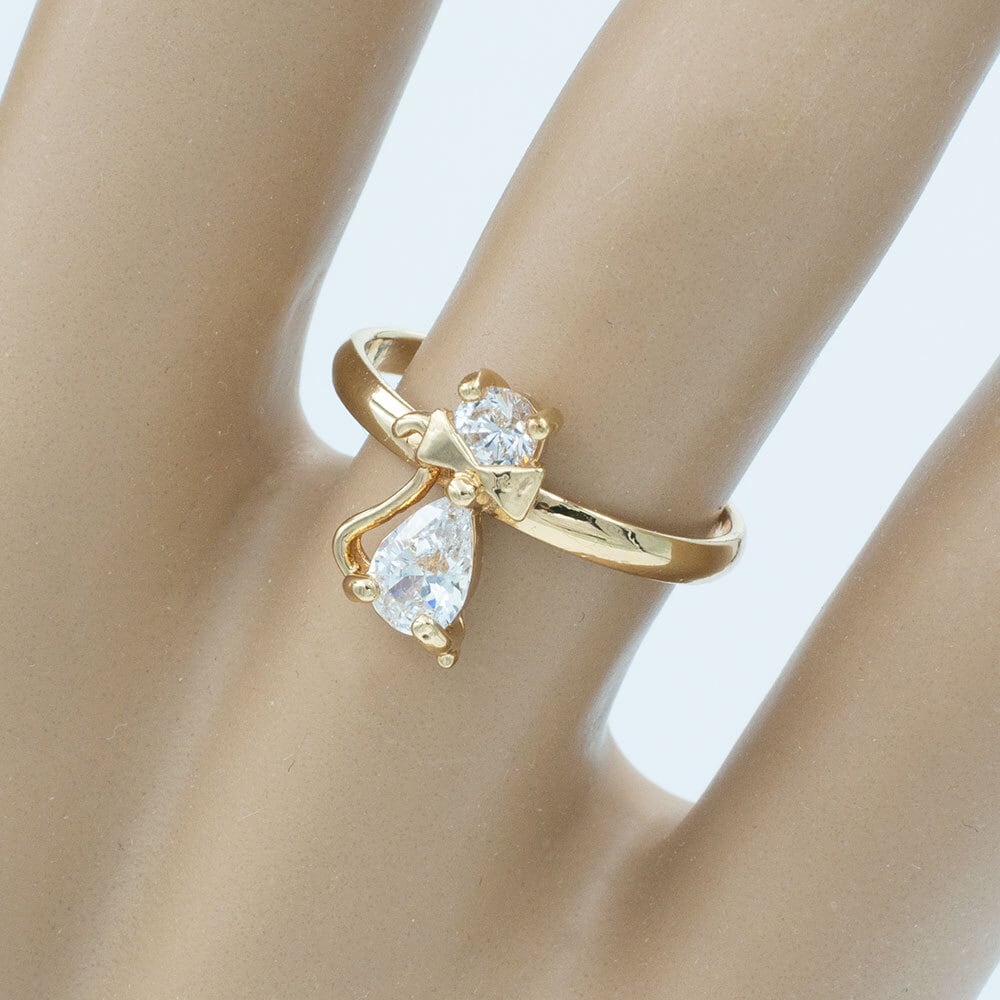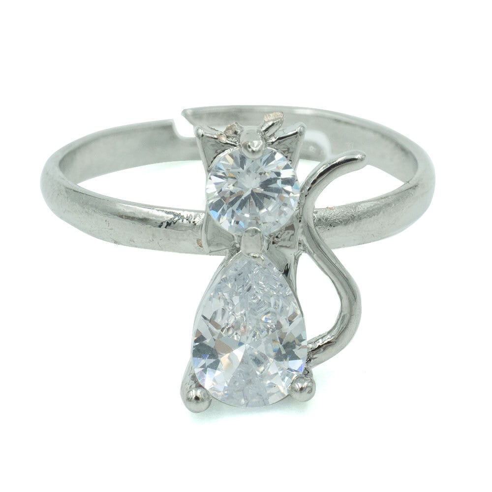 猫の体がイミテーションダイヤのリングです。
