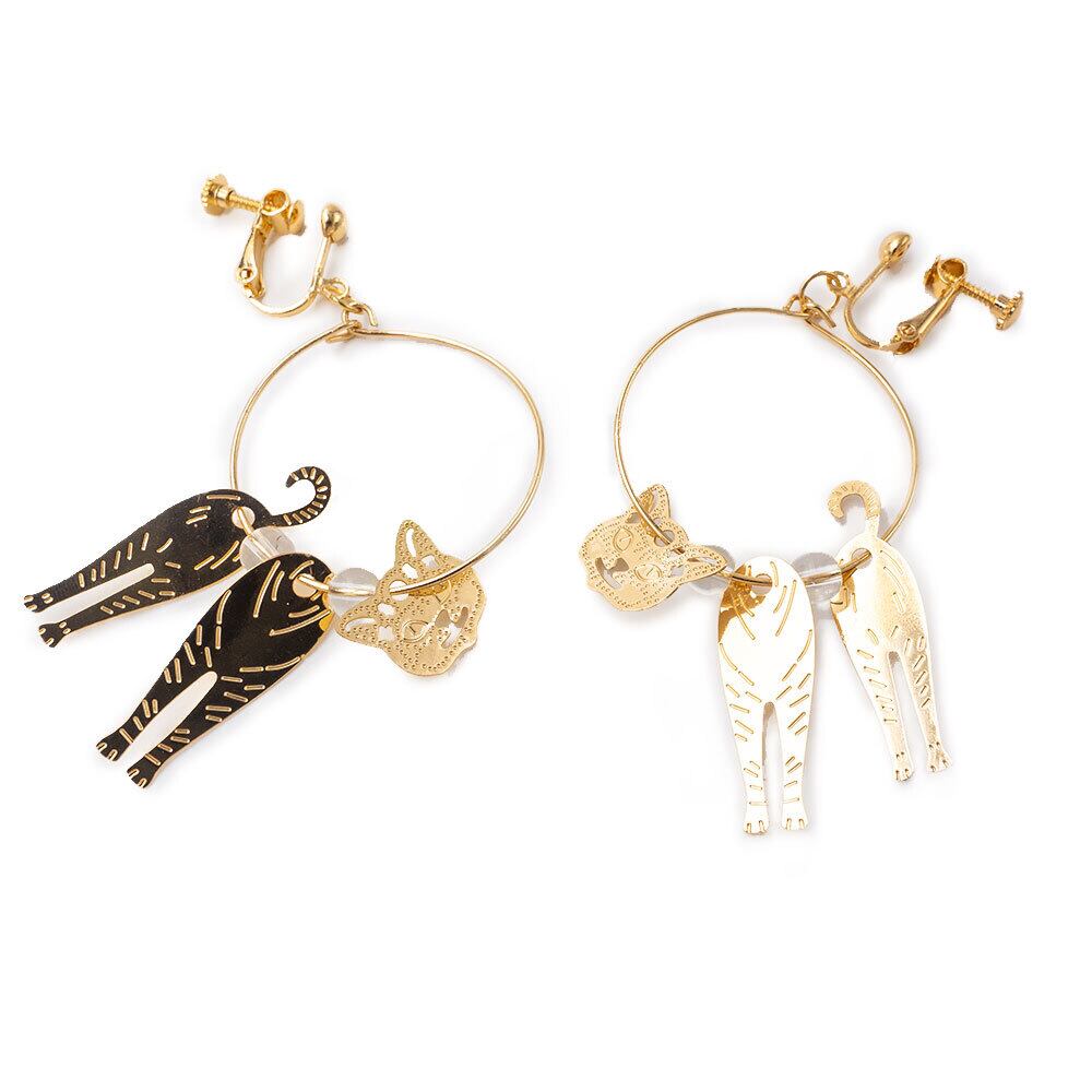 プレート状の重ねパーツで猫さんを表現 しているピアスです。