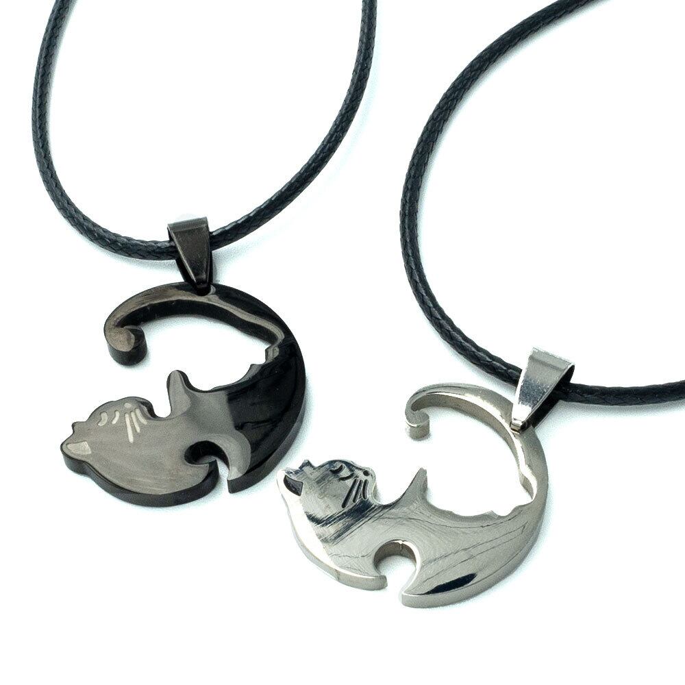 白猫黒猫を合わせるとが一つになる陰陽のネックレスです。