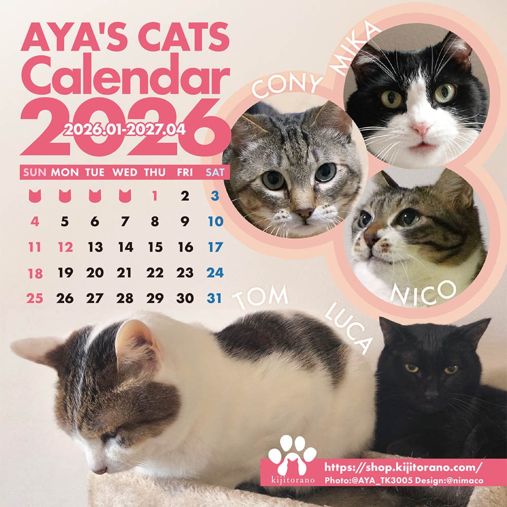 猫達の日々の暮らしや、家族記念日、暫定誕生日等も盛り込んだ2026年1月から